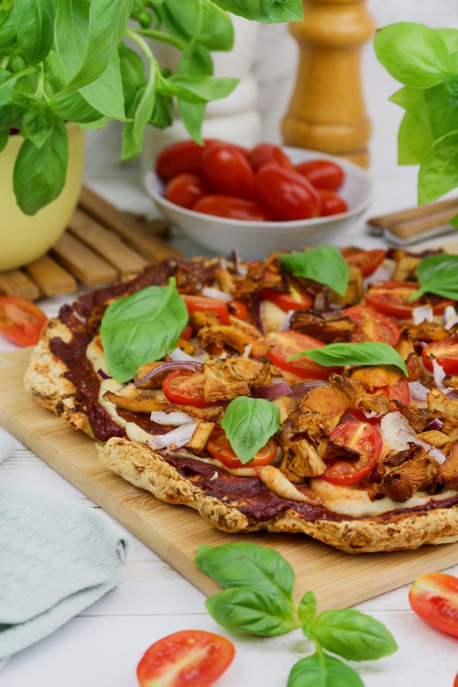 What is chanterelle season without a delicious chanterelle pizza? This pizza truly tastes like the real deal, yet it is 100% plant-based, grain-free, and yeast-free. Despite this, it even features a “cheese” that complements the flavor combination perfectly! No more feeling left out during movie nights when others are snacking—prepare a healthy pizza for yourself and share it with friends!