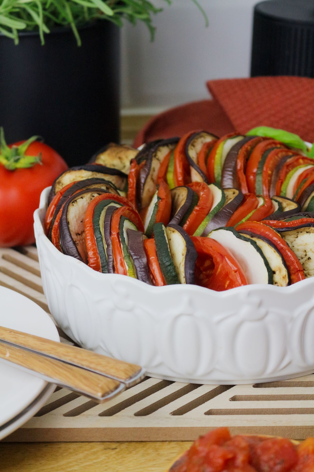 This is a classic French dish that captivates with its simplicity and colourfulness. Ripe tomatoes, delicate and light courgette and a beautifully purple sixth of tangy aubergine meet in the oven dish – each slice a work of art in its own right. It’s a dish that brings a homely coziness and Mediterranean elegance to the table at the same time.