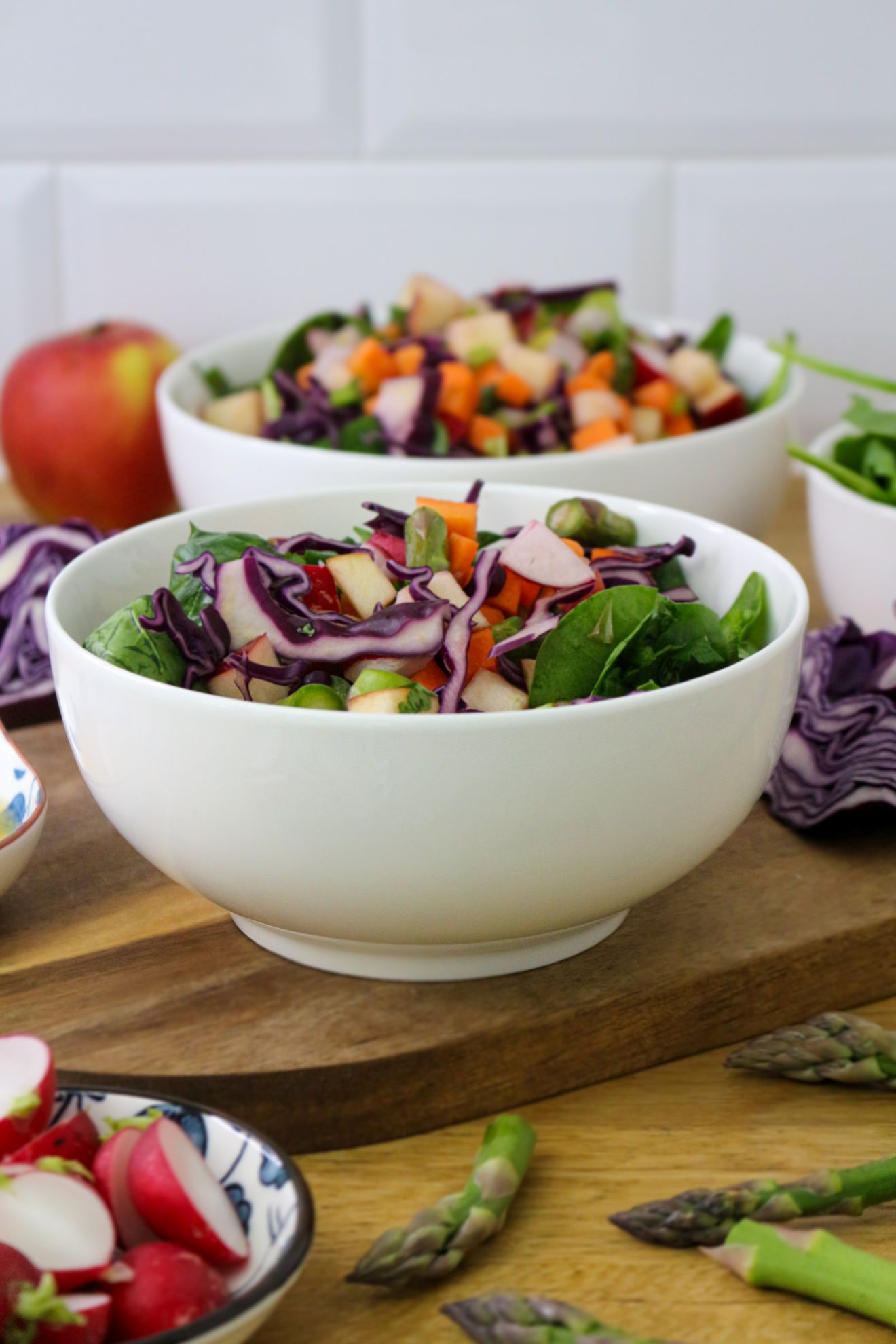The Liver Rescue Salad is light, fresh and nutrient-dense, suitable as a stand-alone meal or as a side dish, for example with steamed vegetables. The main ingredients are spinach and asparagus. Spinach is rich in vitamins and minerals that are easily absorbed by the liver. Asparagus, on the other hand, soothes overworked livers, supports bile secretion and strengthens liver immunity. An apple adds sweetness to the salad, while a juicy carrot enriches the mix with a crunchy texture. The “cherry on the cake” is the refreshing orange “vinaigrette”, which makes the salad particularly enjoyable. Whether you’re undergoing a liver cleanse, planning a cleanse, or just want to add more freshness to your menu, this salad is worth a try!