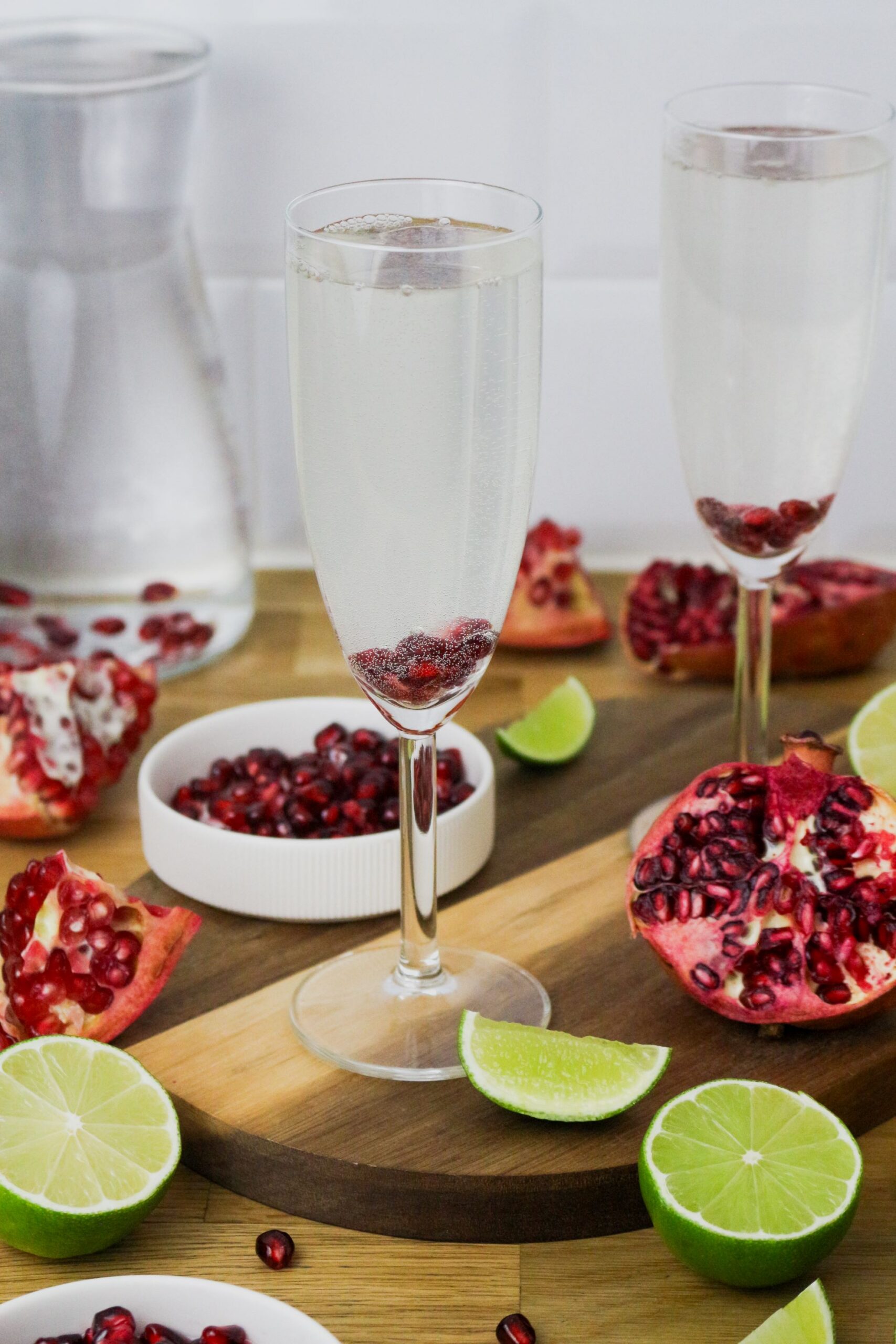 If you’re looking for a non-alcoholic bubbly for a party or celebration, this recipe could be your new favourite! A delicious coconut flavoured bubble, spiced up with pomegranate seeds, tart lime and rich maple syrup. The sparkling effect is provided by aerated water. The result is a celebratory drink to clink glasses with – be it Christmas, New Year’s Eve or any other special occasion. As a bonus, you can make exactly as many as you need without having to rush to the shop when the glasses run out! 😉