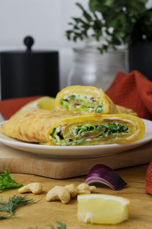 Nourishing potato tortilla with cashew cream and fresh vegetables